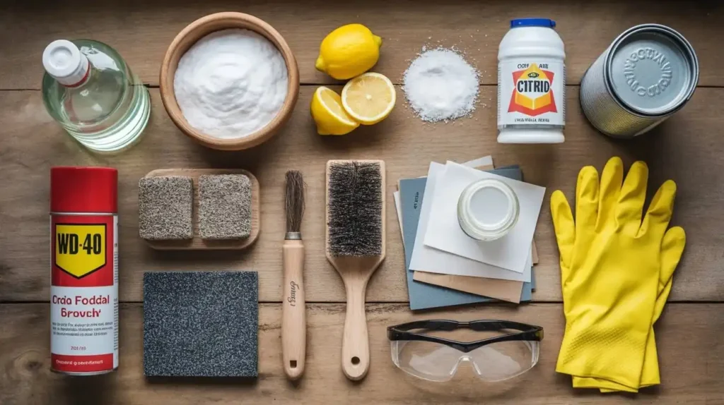 Before you start, gather your materials. Having everything ready saves time and gives you better results when cleaning rusty metal of any kind.